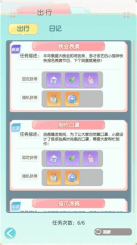 2、安排猫咪外出完成趣味任务,以获取装饰家园的丰厚奖励。