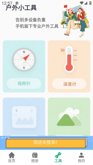 4、户外小工具,包含指南针以及温度计等日常功能。