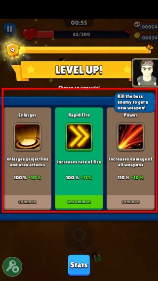 2、当完成第一波后会出现三选一的增益效果;
