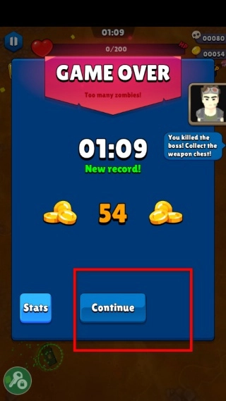 3、当角色的生命值耗尽后,游戏就会结束,同时你会看到自己获得的金币数量。