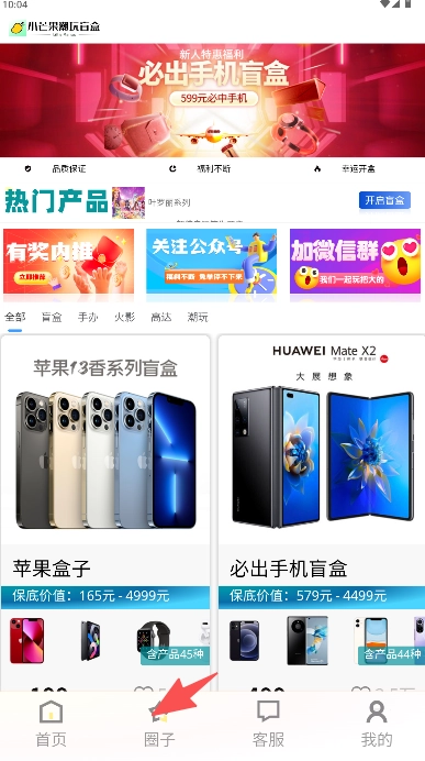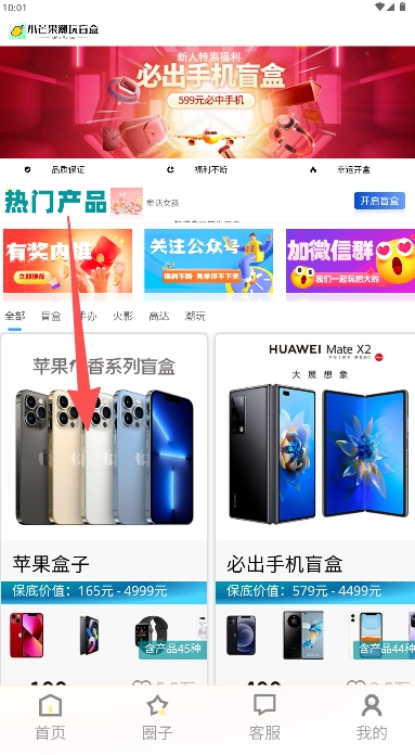 1、在首页热门产品选择“苹果盒子”开盲盒。