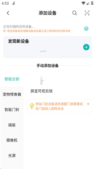 4、开启位置权限后,系统会自动搜索附近的设备,你也可以手动添加设备。
