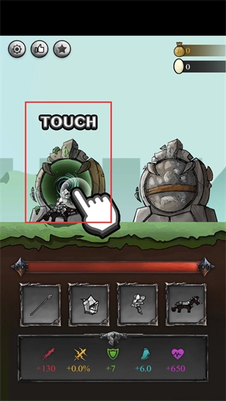 1、点击带有【TOUCH】标识的传送门,触发战斗后开启骑士的冒险之旅,通过挑战地牢怪物来获取装备。