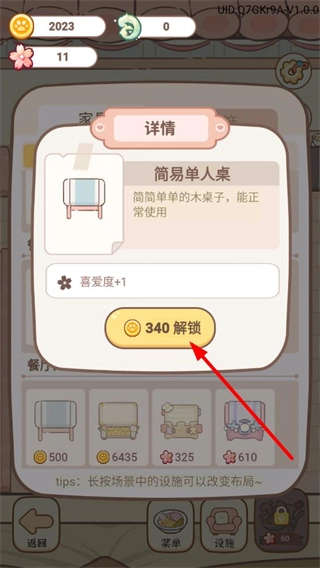 3、确认资源充足后,点击详情窗口中的解锁按钮,消耗对应货币即可获取该家具。