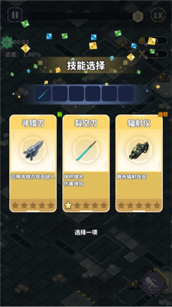3.消灭敌人会掉落绿色能量,拾取可增加经验。经验满后,即可选择强力技能。