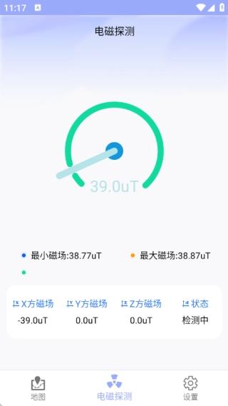4、在电磁探测页面中提供了最小磁场和最大磁场的信息,还可以检测最新的状态情况。