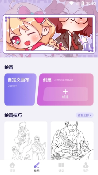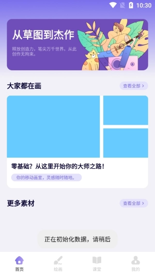 2、首页推送的绘画工具和素材多多,支持涂鸦绘画。