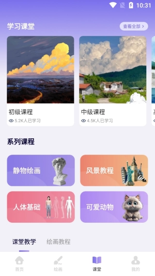 4、课堂学习板块,风景以及静物绘画教学等,资源很丰富。