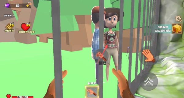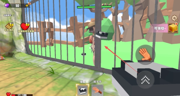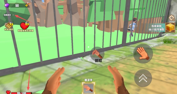 1、操控猴子移动到笼子边缘,点击抓取功能抓住笼子外的人类,借助后续的互动操作启动与人类的对抗进程。