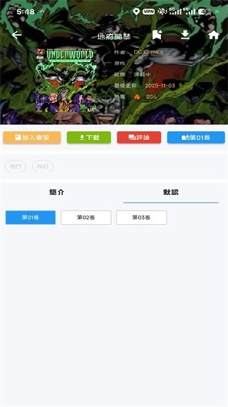2. 选定作品后,点击【第一卷】就能开始阅读,也可以把作品下载下来进行离线阅读。
