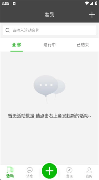 2、进入首页后,您可以点击“+”按钮快速发起新活动,同时也能查看正在进行的活动以及已经结束的活动。