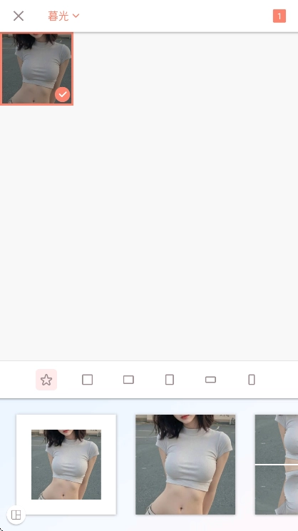 根据选择的照片自动生成各式模版,模版可依据不同需求切换至不同比例;