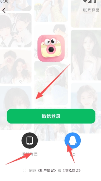 1、可奈相机的登录方式有微信登录、手机号码登录、QQ登录以及账号密码登录等4种。