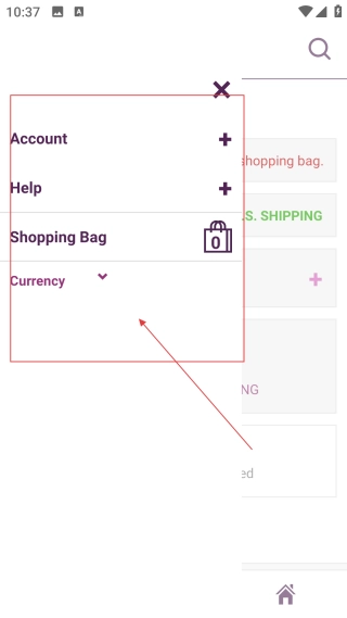 2、这是功能管理菜单,包含【账户管理、帮助、购物袋、货币】等功能,便捷管理相关信息。