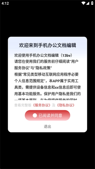 1、首次使用请阅读并同意服务协议和隐私协议。