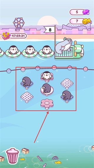 1、在初始阶段,需把等级相同的【企鹅】进行合并,以此解锁新的企鹅形象并积累金币,这些金币可用于后续购买更高级的企鹅,从而提升乐园等级。