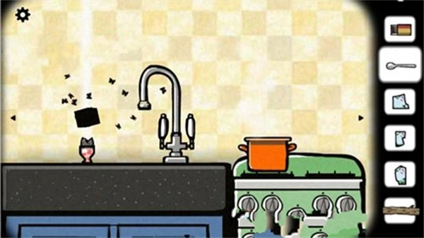 3、再回到厨房把锅装满水并点开煤气炉用火柴点火将锅置于炉上煮沸,把鹦鹉产下的蛋丢进锅中煮熟后取出放到水龙头旁的蛋托位置,再用勺子敲击蛋壳即可让隐藏的方块现形并成功获得春季关键物品。