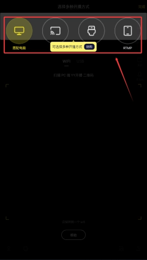 3、直播头顶,点击喜欢的方式直播。