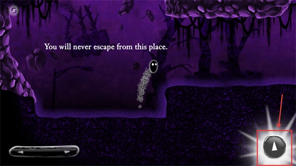 3、当遇到障碍时,点击界面右侧的【跳跃按钮】让小黑跳跃,避开危险区域,继续向逃离虚空的目标前进。