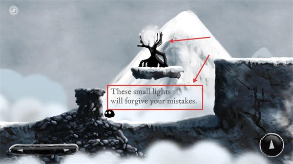4、在雪地场景中,收集【小光点】可重置操作失误,同时留意树状物体的提示,助力解开场景中的解谜机关。