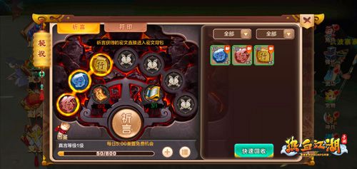 在江湖中行走,从小白到侠客是轻而易举,但是要从普通侠客进阶到大师级绝非易事。后期提升每一步都难如登天,为了让强者更强,91级以上玩家都可进入秘祝系统收集密文。密文收集只是提升的第一布,只有将密文放入符印中,才能激活相应的属性和效果。免费祈言机会,每日一次,免费次数消耗后,也可使用召言符和悟道宝卷继续祈言。