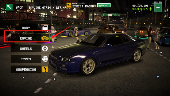 4、当前还是素车状态,想要提升性能就要进行改装,首先对引擎进行提升