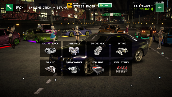5、在这里对引擎缸数、活塞、缸头、进气、排气、涡轮、ECu、喷油嘴等部件进行升级