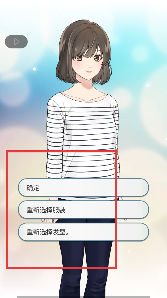 2、进入创建人物界面,如果对当前的服装或者发型不满意,能够点击重新选择服装或者重新选择发型进行调整,满意之后点击确定就可以了。