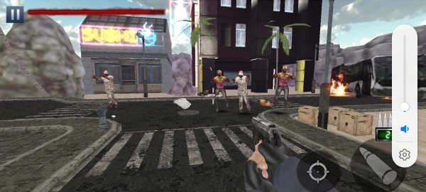 2、以第一人称视角射击沿途丧尸,在精准消灭目标的同时注意躲避攻击。